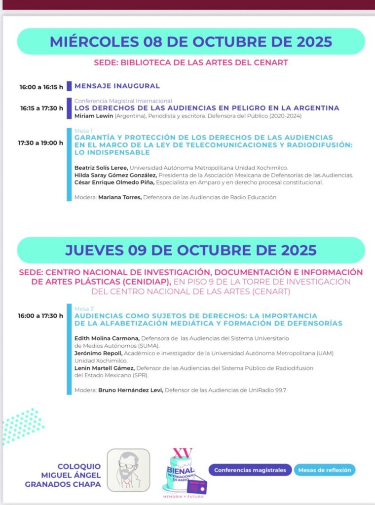 Como parte de XV Bienal de Radio se llevará a cabo el Coloquio Miguel Ángel Granados Chapa. Tendremos mucho gusto en participar. ¡Gracias por la invitación a Radio Educación y a la Mtra. Mariana Torres, Defensora de las audiencias.