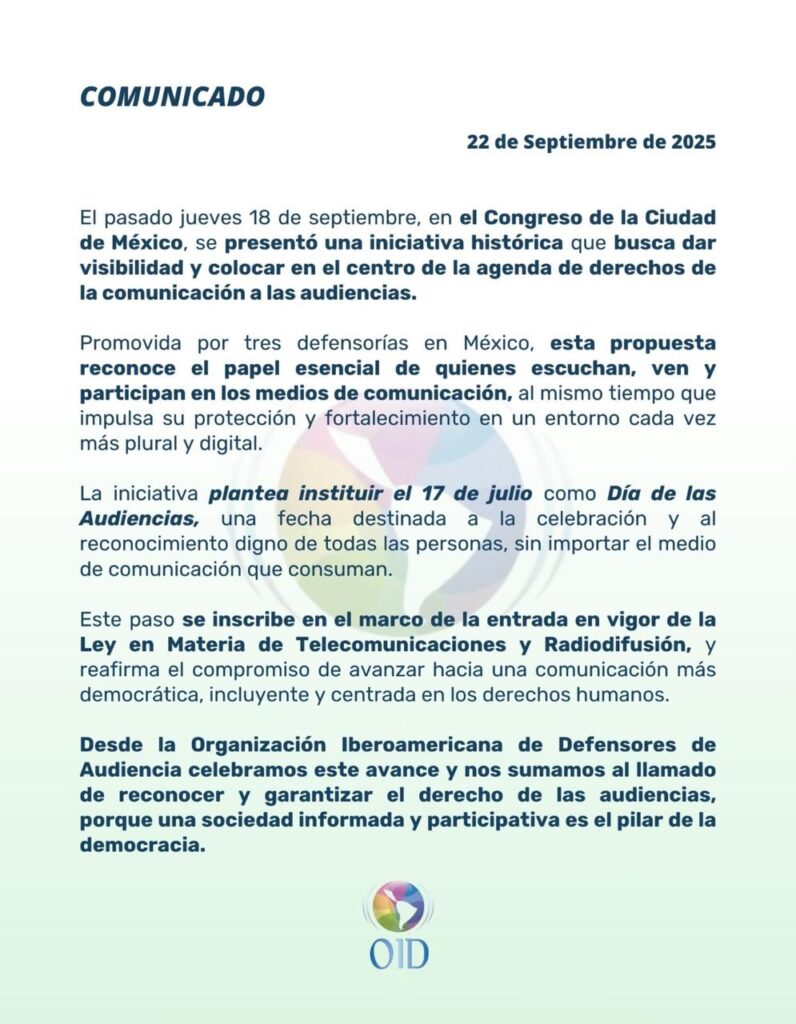 Te invitamos a leer el análisis completo y el posicionamiento de nuestra organización hermana, la Organización Iberoamericana de Defensoras y Defensores de las Audiencias (OID), en su página web.